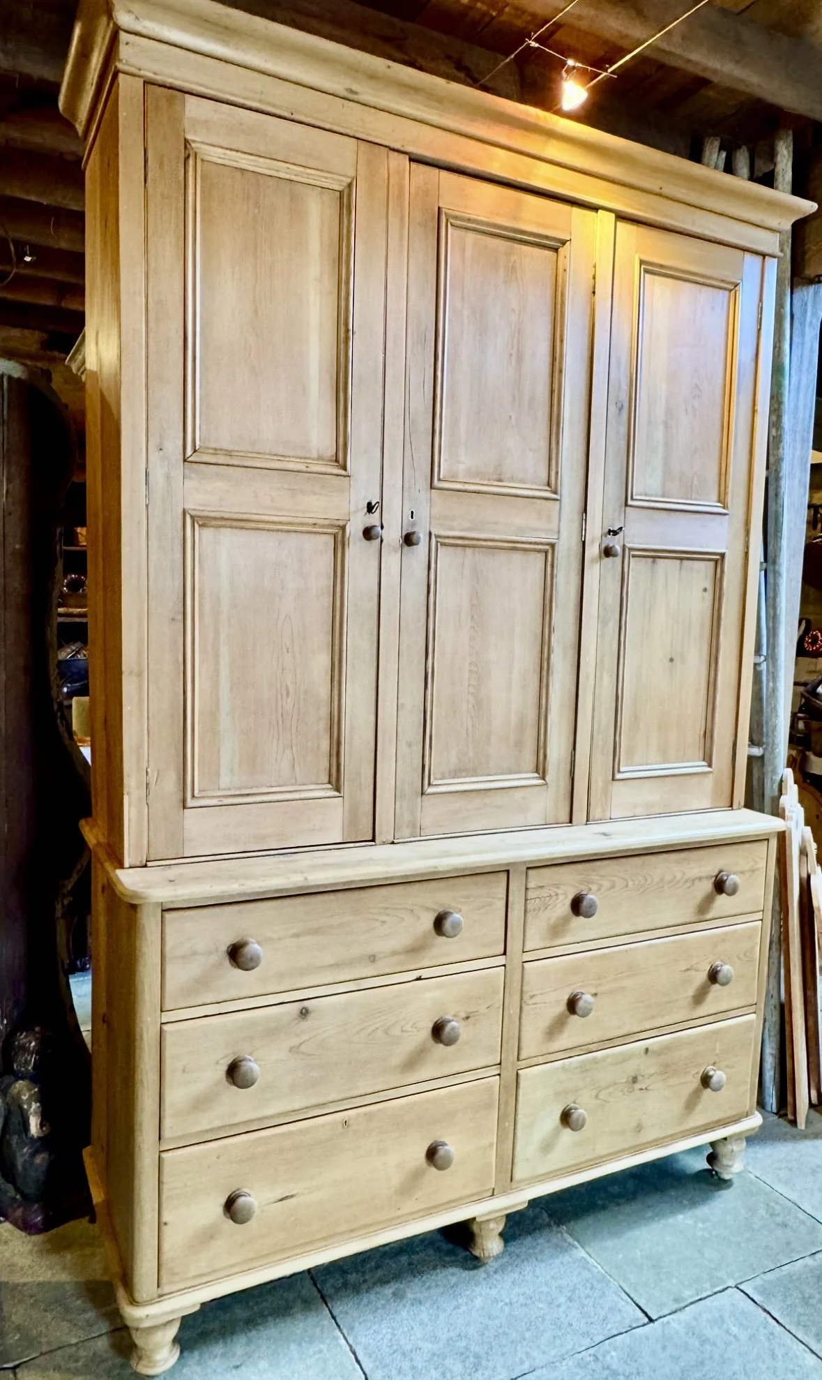 AF Fabulous 19th century English country pine housekeepers cupboard of large proportions with three doors to top and 6large drawers to base 167cm ling 59.5cm deep 256cm high $7995