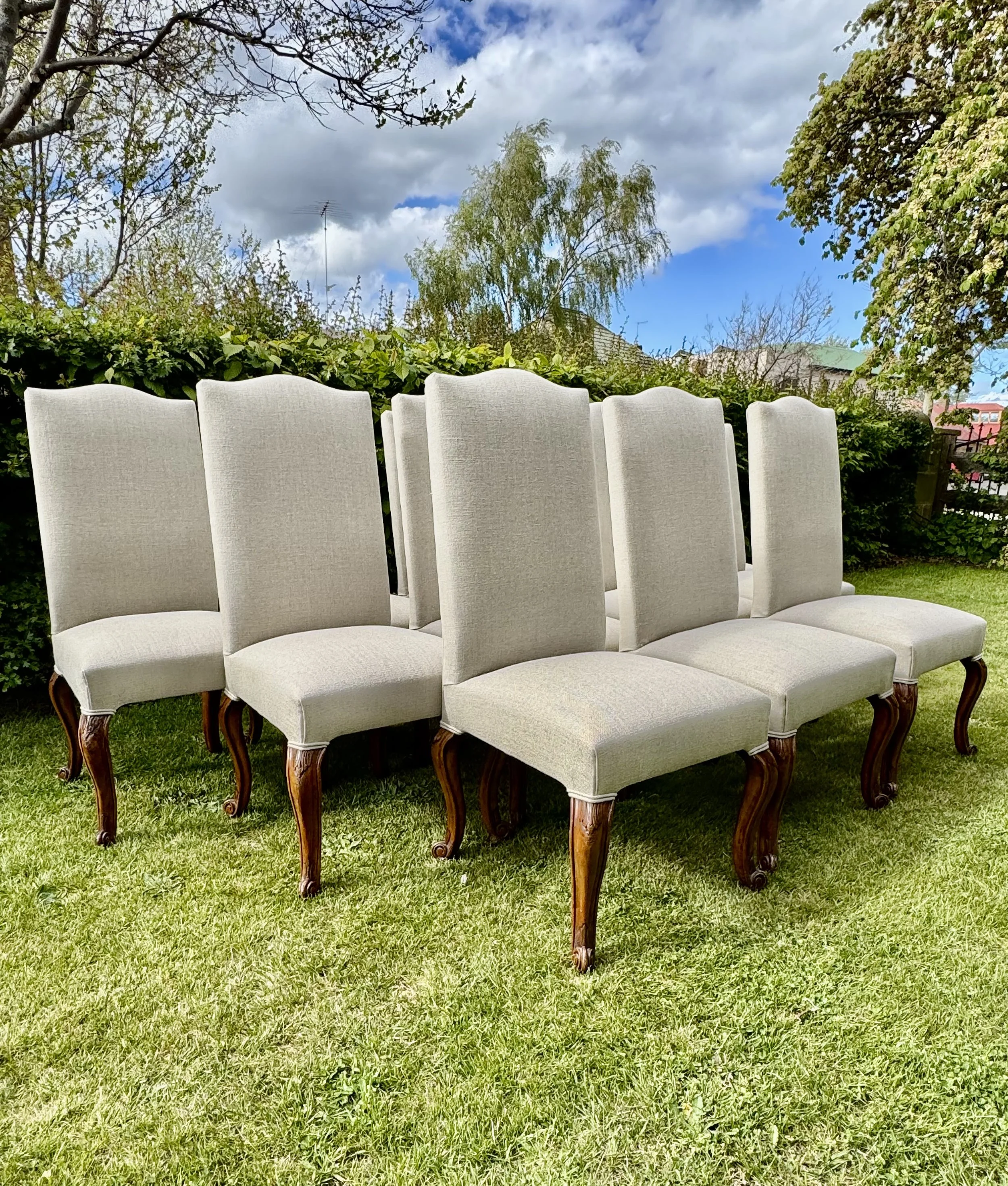 AF Set of 12 French linen upholstered dining chairs $8340 set